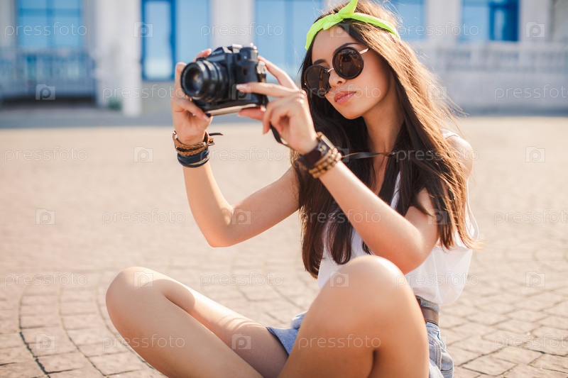 Брюнетка с фотокамерой