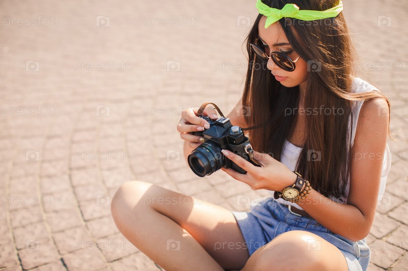 Брюнетка с фотокамерой