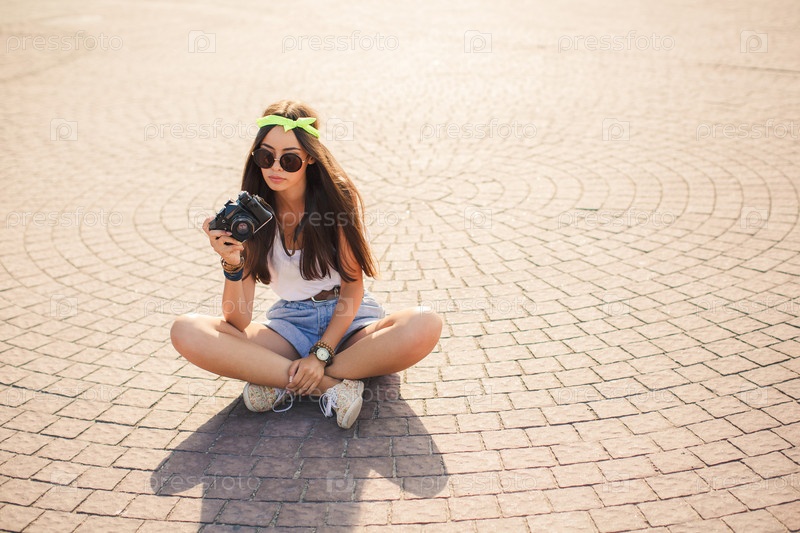 Брюнетка с фотокамерой