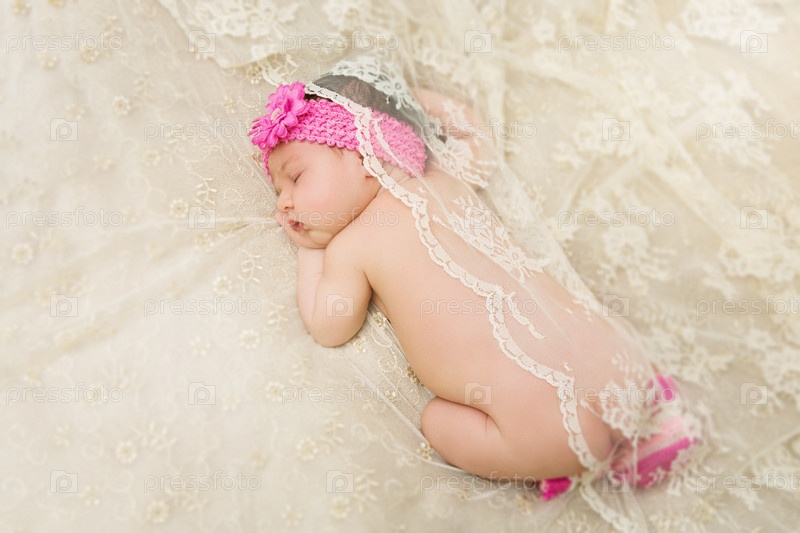 Спящая новорожденная девочка