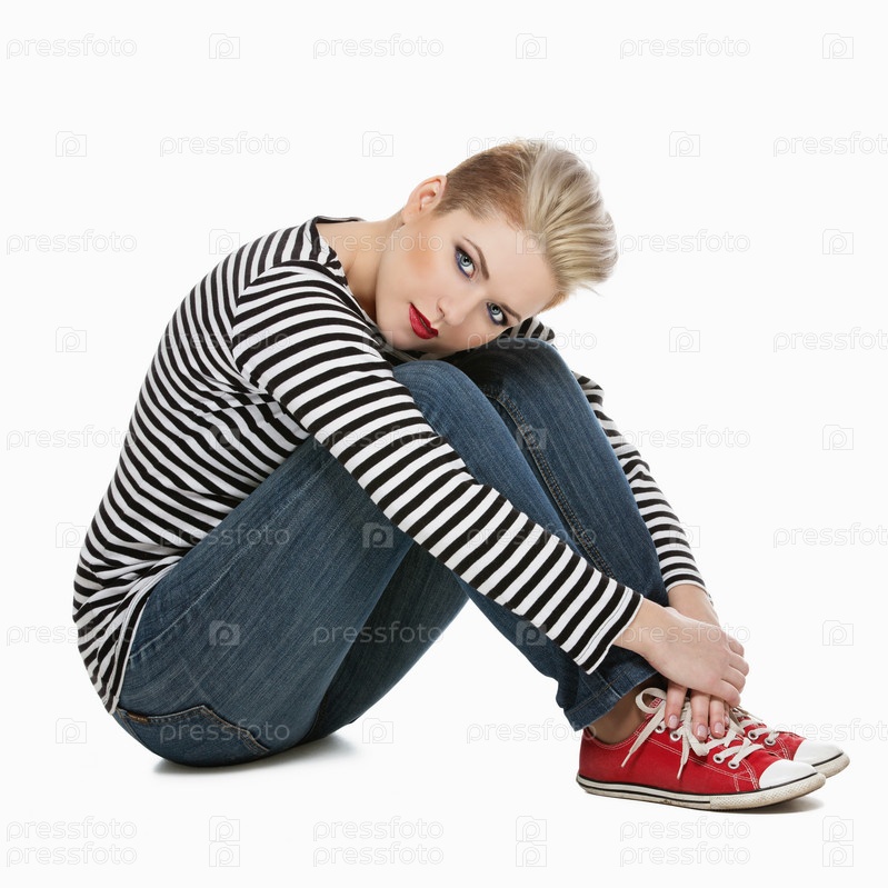 Красивая женщина в тельняшке