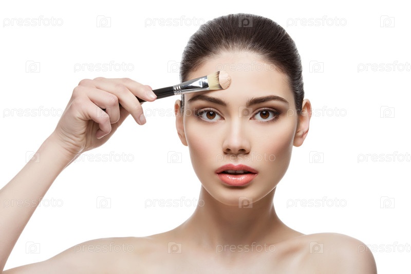Красивая девушка наносит тональный крем