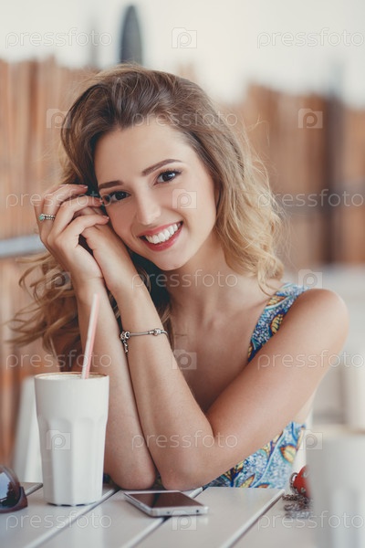 Красивая женщина в кафе