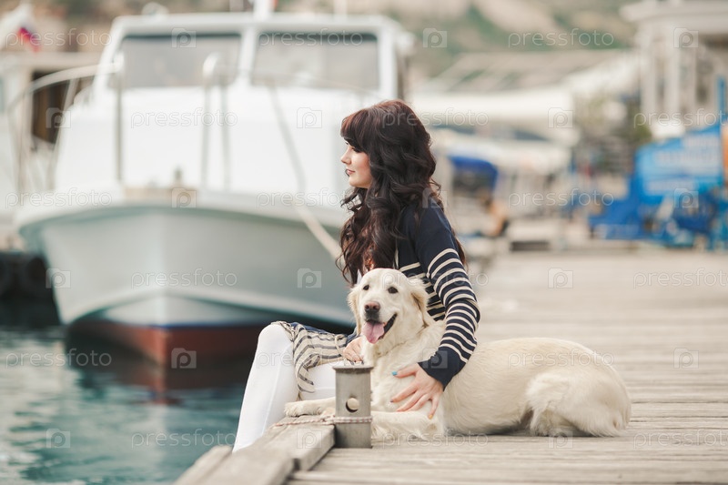 Красивая брюнетка с собакой