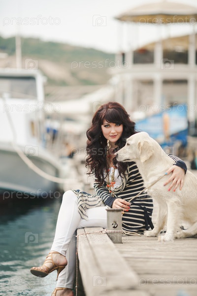 Красивая брюнетка с собакой