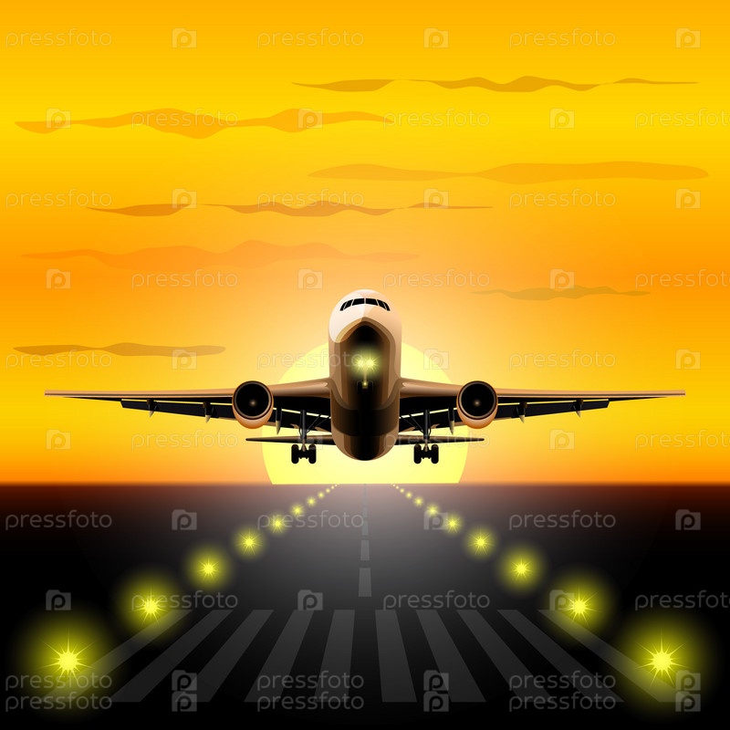 Векторная иллюстрация авиалайнер на взлете