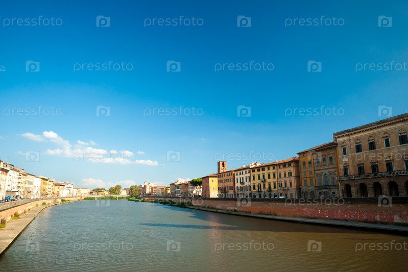 Вид на старые улицы и реки Арно в городе Пиза, Италия
