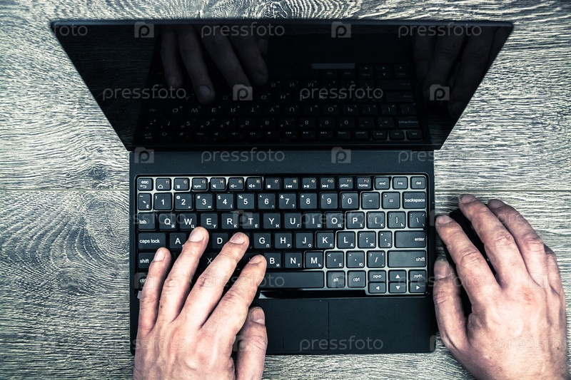Ноутбук с руками на дереве