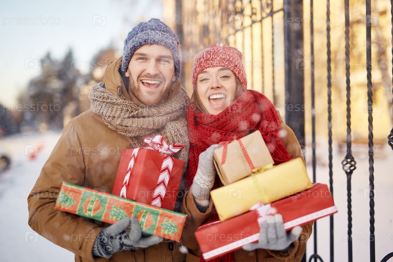 Пара с рождественскими подарками