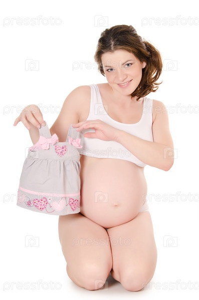 Беременная женщина на белом фоне