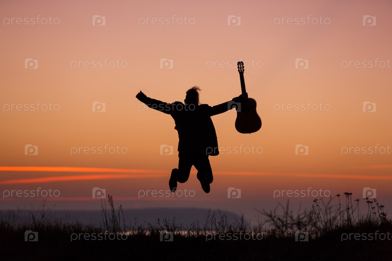 Человек прыгает с гитарой