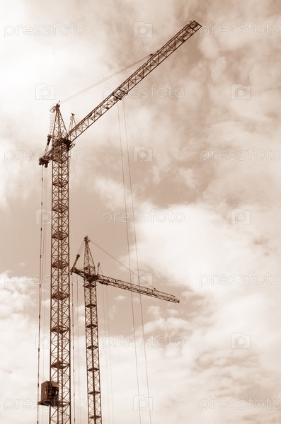 Подъемные краны на фоне облачного неба