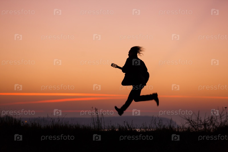 Человек прыгает с гитарой