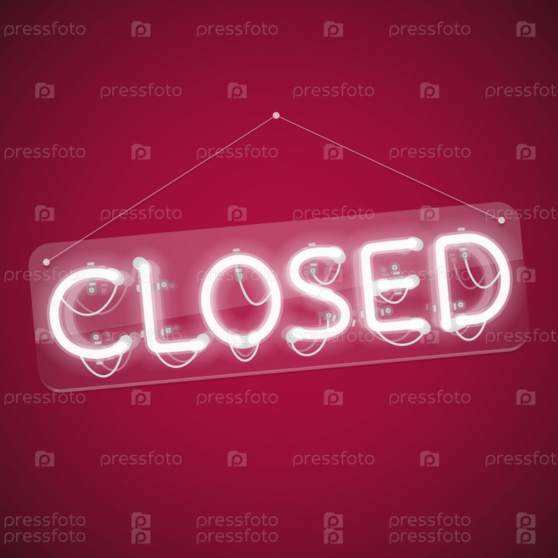 "Закрыто" белый светящийся неоновый знак