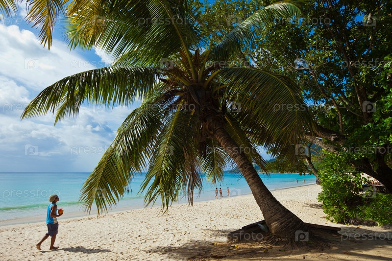 Тропический пляж с пальмой