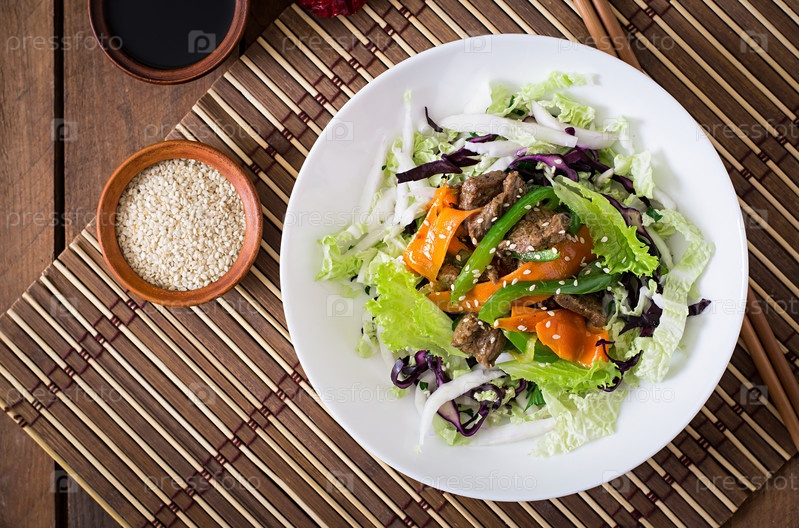 Свежий салат с говядиной и овощами