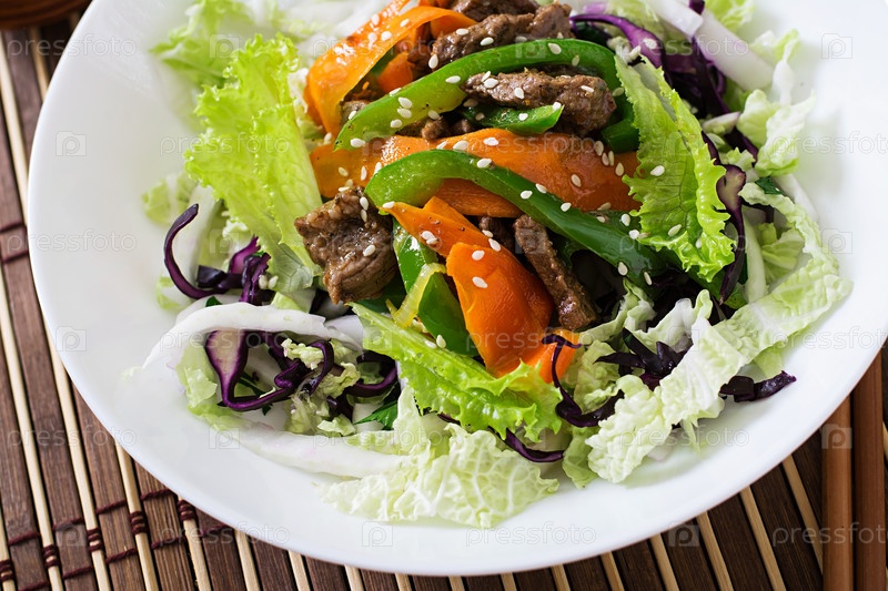 Свежий салат с говядиной и овощами