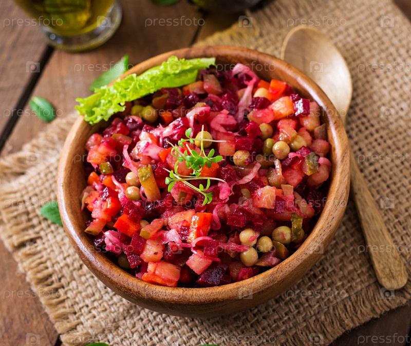 Винегрет в деревянной миске