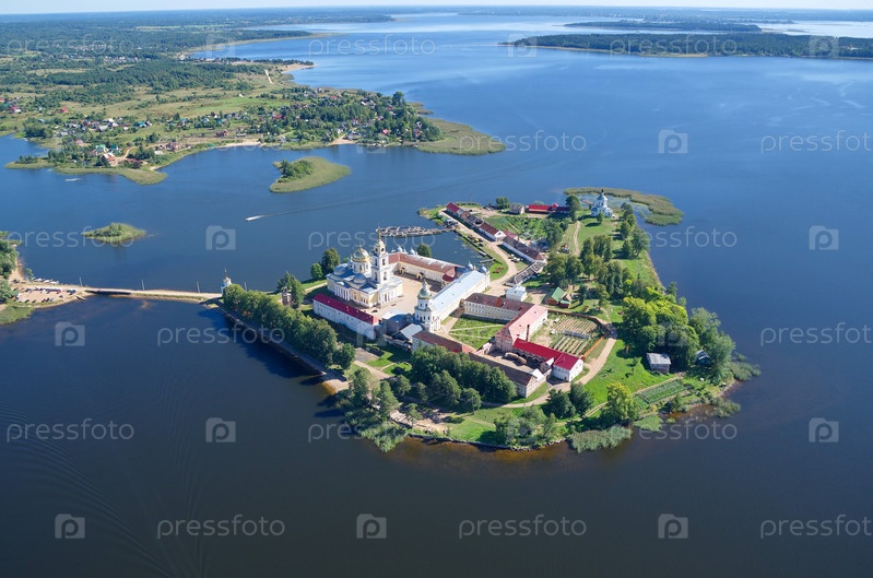 Вид на Нило-Столобенскую (Нилову) пустынь и озеро Селигер с высоты