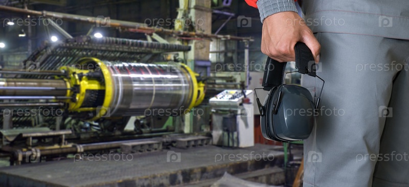 Работник с защитными наушниками