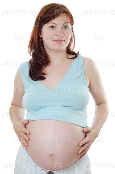 Беременная женщина на белом фоне