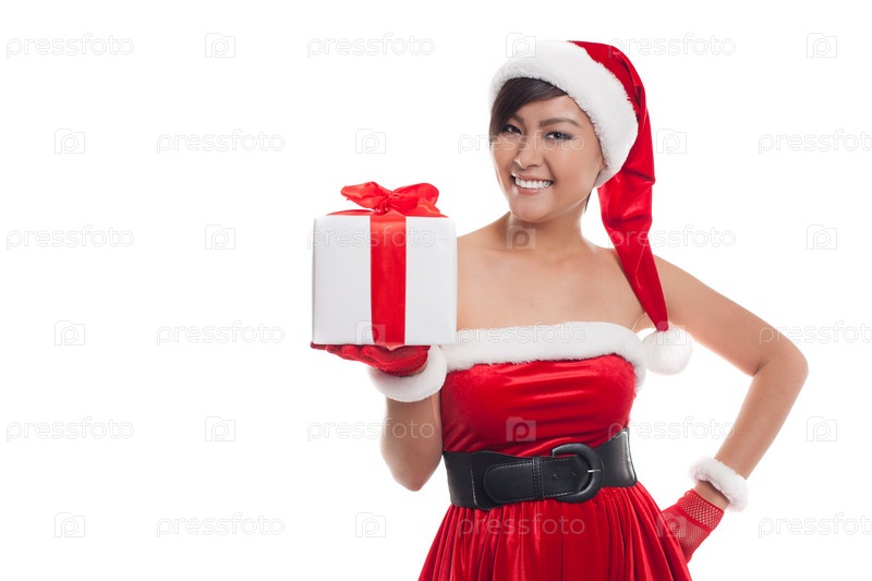 Красивая девушка с рождественским подарком