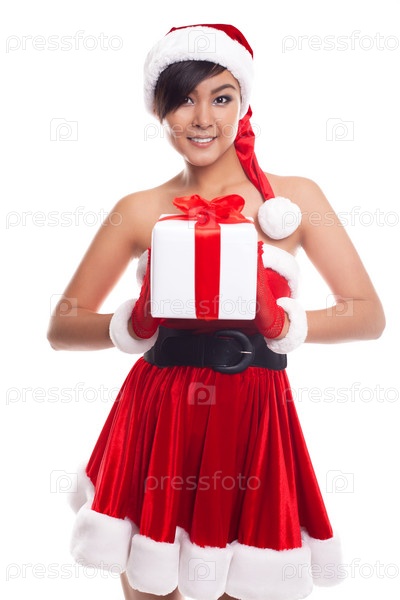 Красивая девушка с рождественским подарком