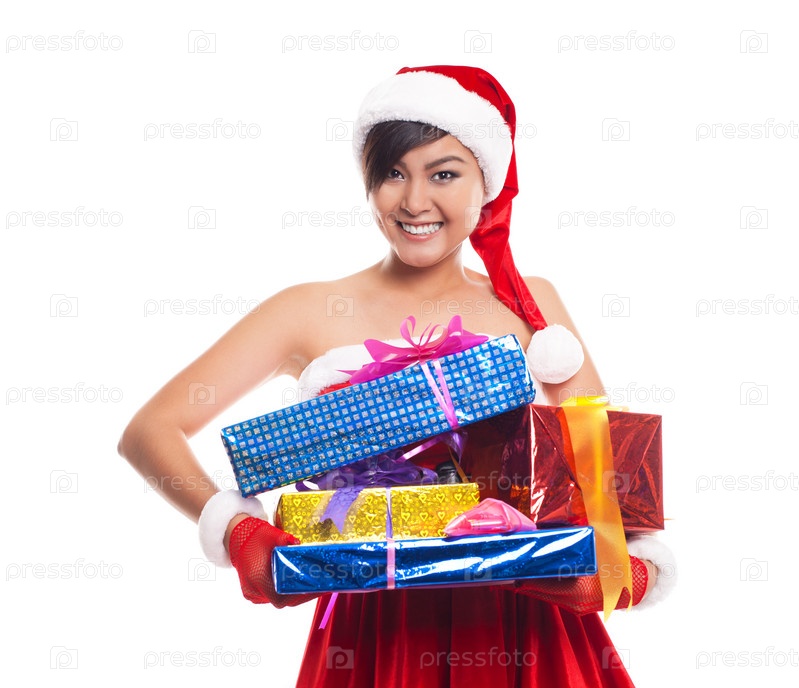 Красивая девушка с рождественским подарком