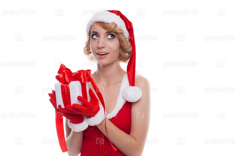 Красивая девушка с рождественским подарком