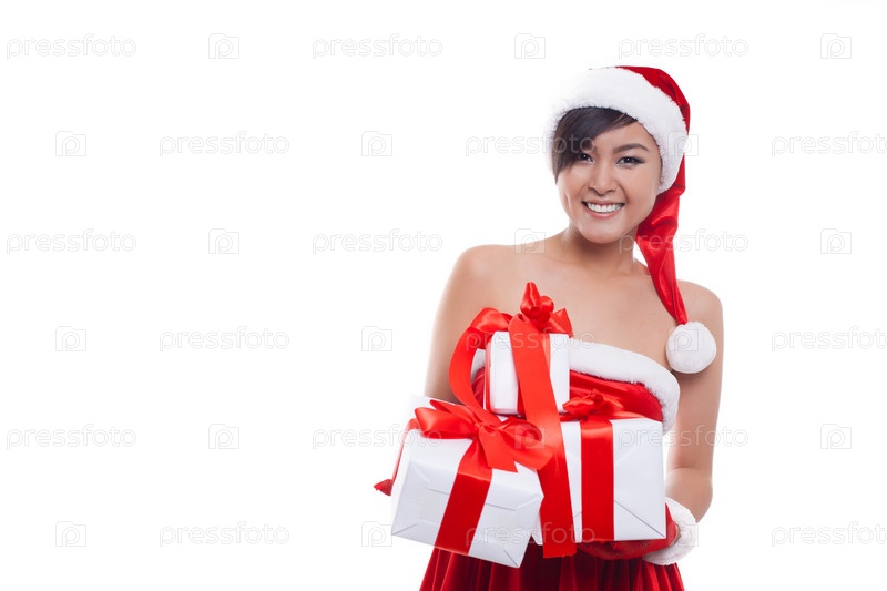 Красивая девушка с рождественскими подарками