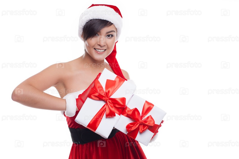 Красивая девушка с рождественскими подарками