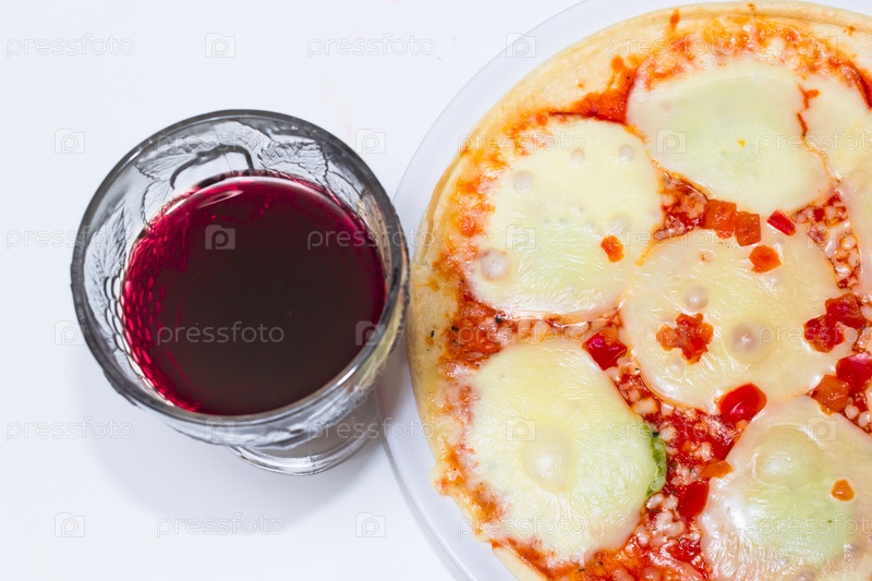 Итальянской пиццы с сыром моцарелла и бокалом красного вина