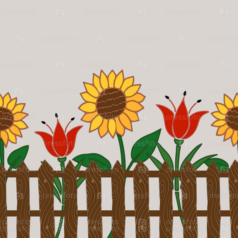 Вектор забор с подсолнухами Лили