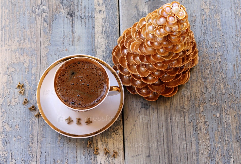 Золотой елку ручной снарядов и кофе - с новым годом