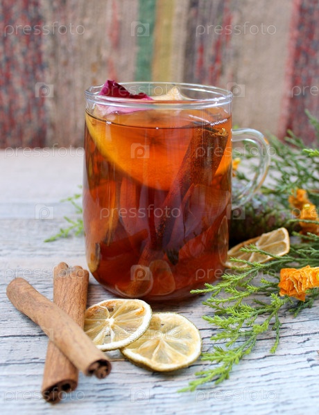Рождественский чай с сушеной лимона, корицу и туя западная ветвь
