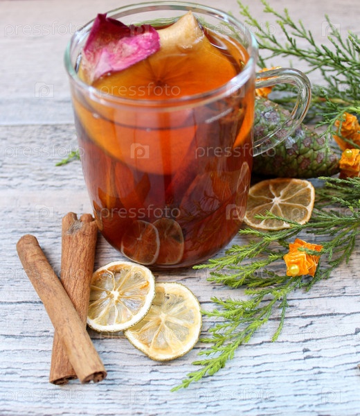 Рождественский чай с сушеной лимона, корицу и туя западная ветвь