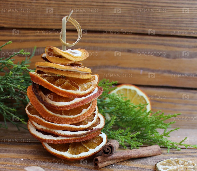 Рождественская елка ручной работы из сухофруктов оранжевый