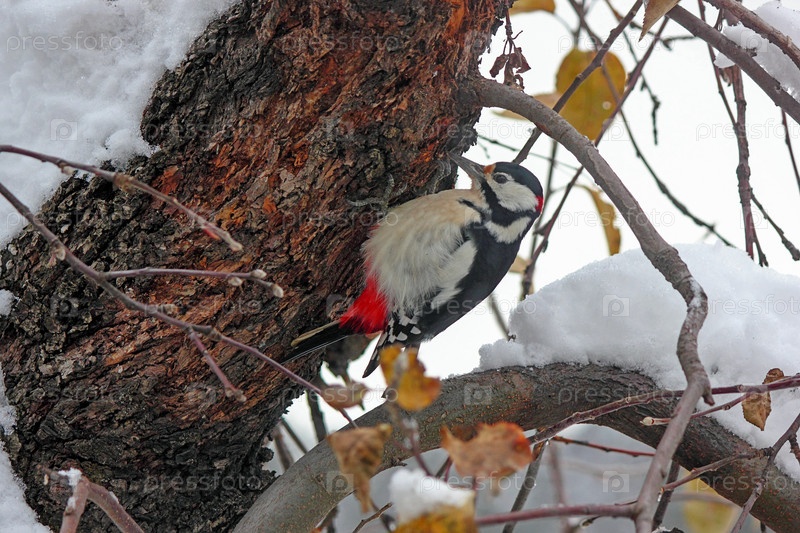 великий пятнистый дятел