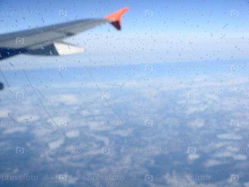 Крыло самолета на фоне неба