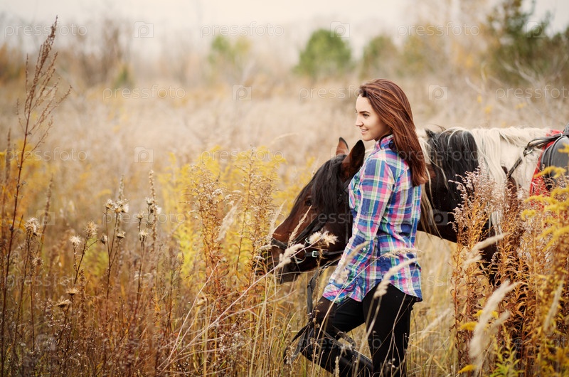 Женщина и ее лошадь в поле