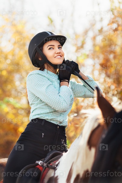Портрет молодой красивой женщины на лошади