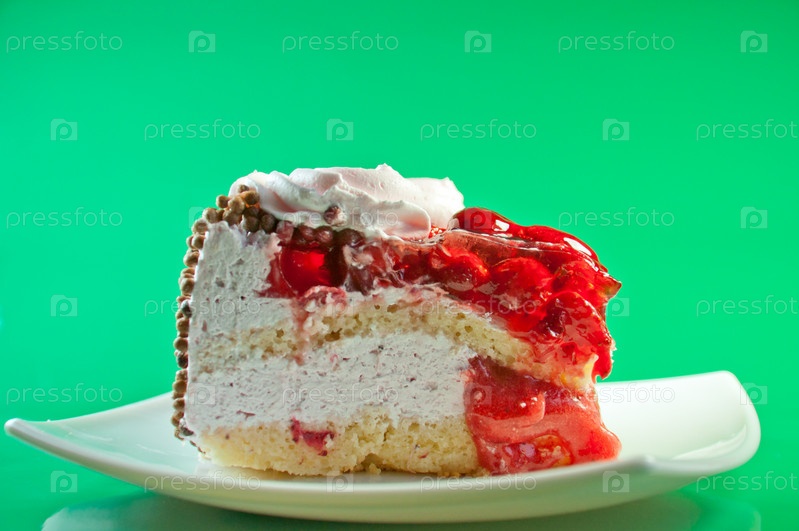 Кусок торта с кремом и свежими ягодами