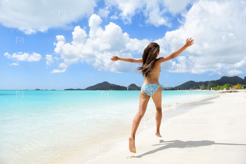 Счастливая девушка на пляже