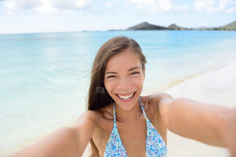 Счастливая девушка на пляже