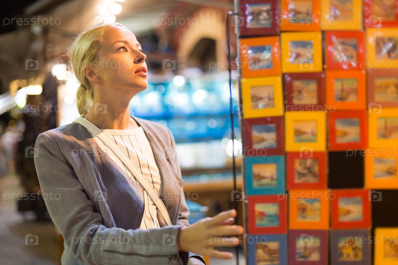 Девушка рассматривает сувениры
