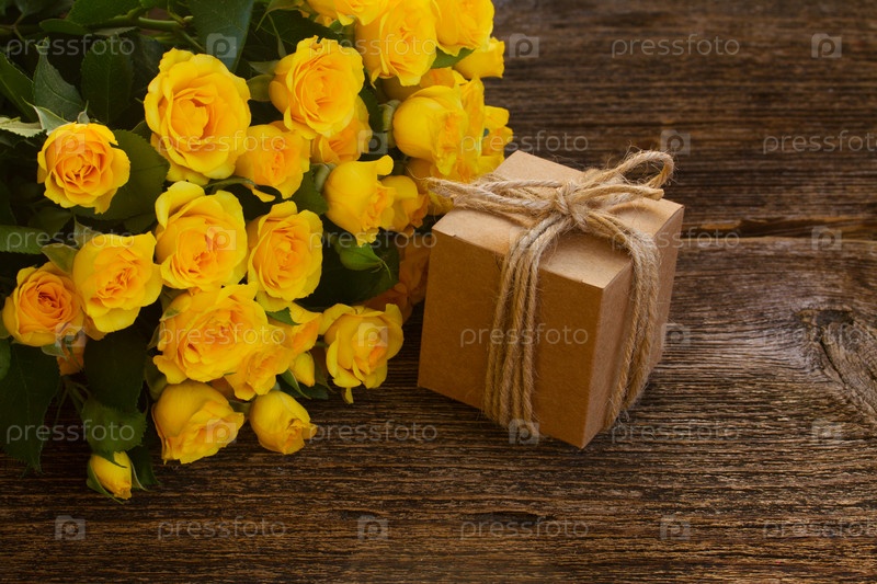 Букет из свежих роз и подарочная коробка