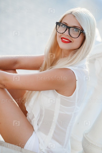 Красивая блондинка в очках