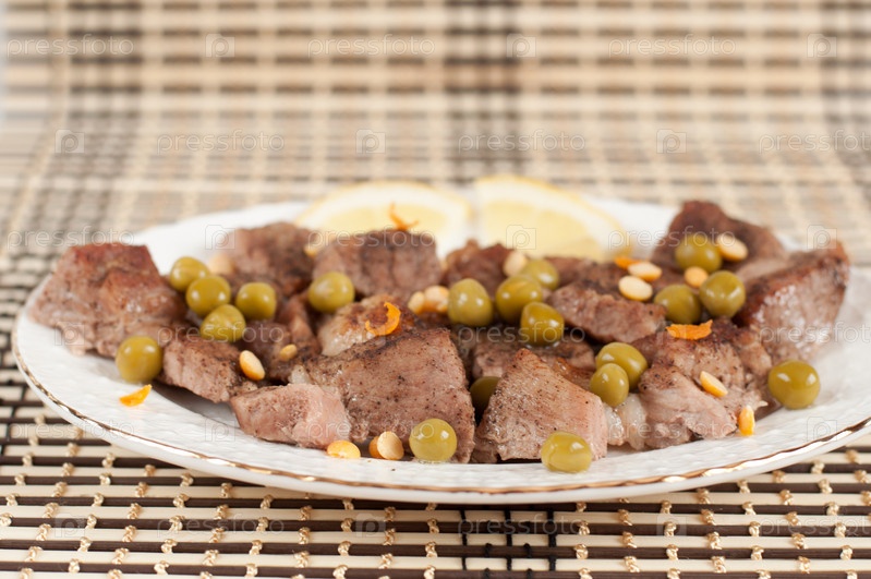 Жареная баранина с сыром и зеленым горошком