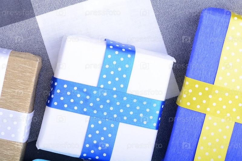 Яркие подарки с лентами, праздник пригласительный билет