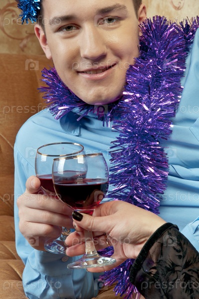 Счастливый молодой человек встречает новый год